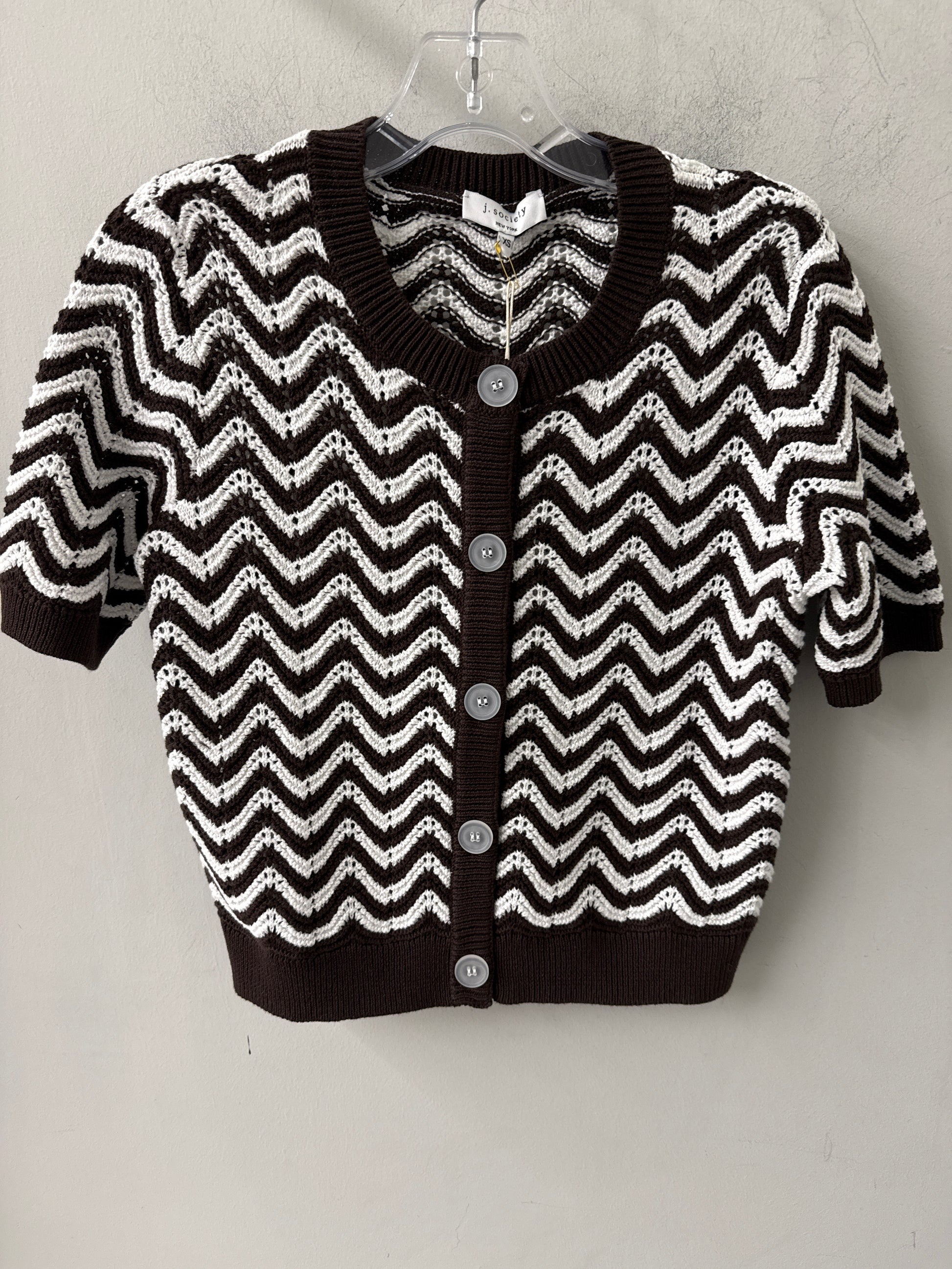 Short sleeve chevron cardi in chocolate and white.