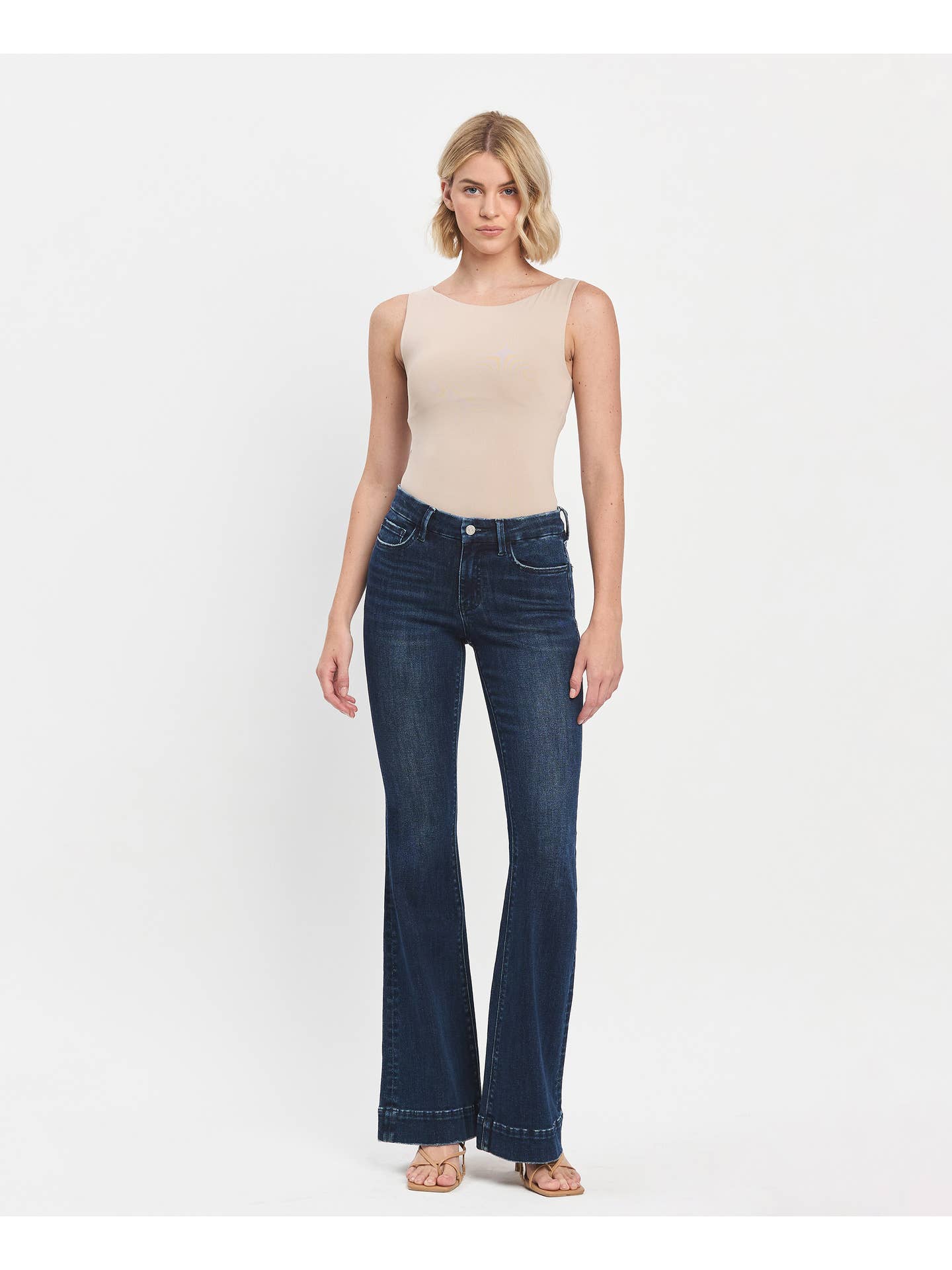 Mid rise full length flare jeans Comfort stretch denim, mid rise waist, full length, flare jeans