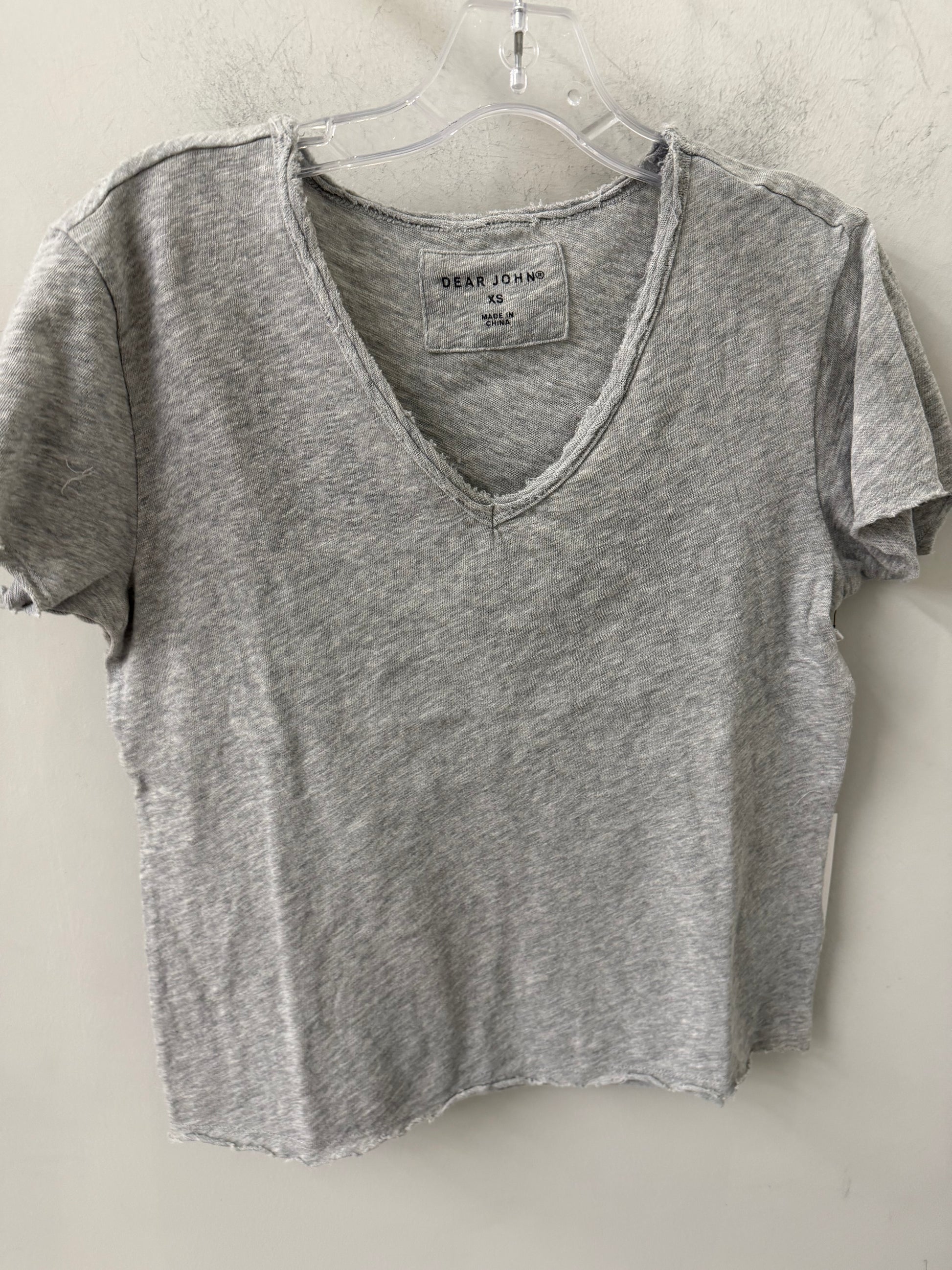 Short sleeve slub tee, v-neck with raw edges & patch labeling. The trendy piece that radiates your flair in soft & texture fabric, with a vintage wash touch... Solid color knit on relaxed fit.